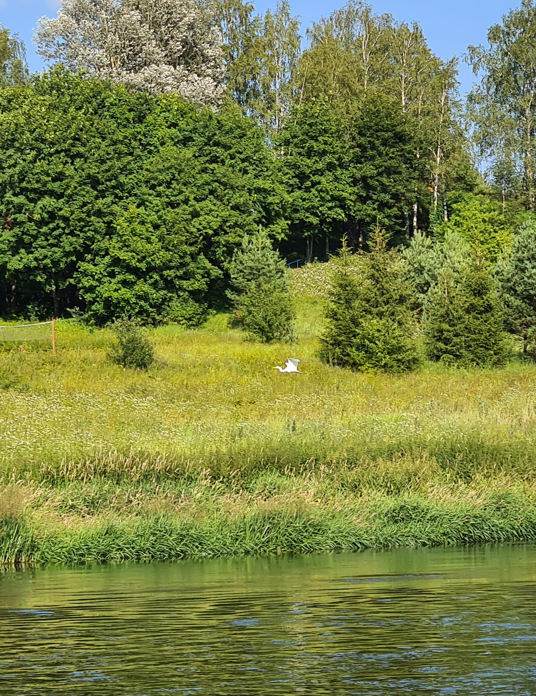 Летящая белая цапля (?).