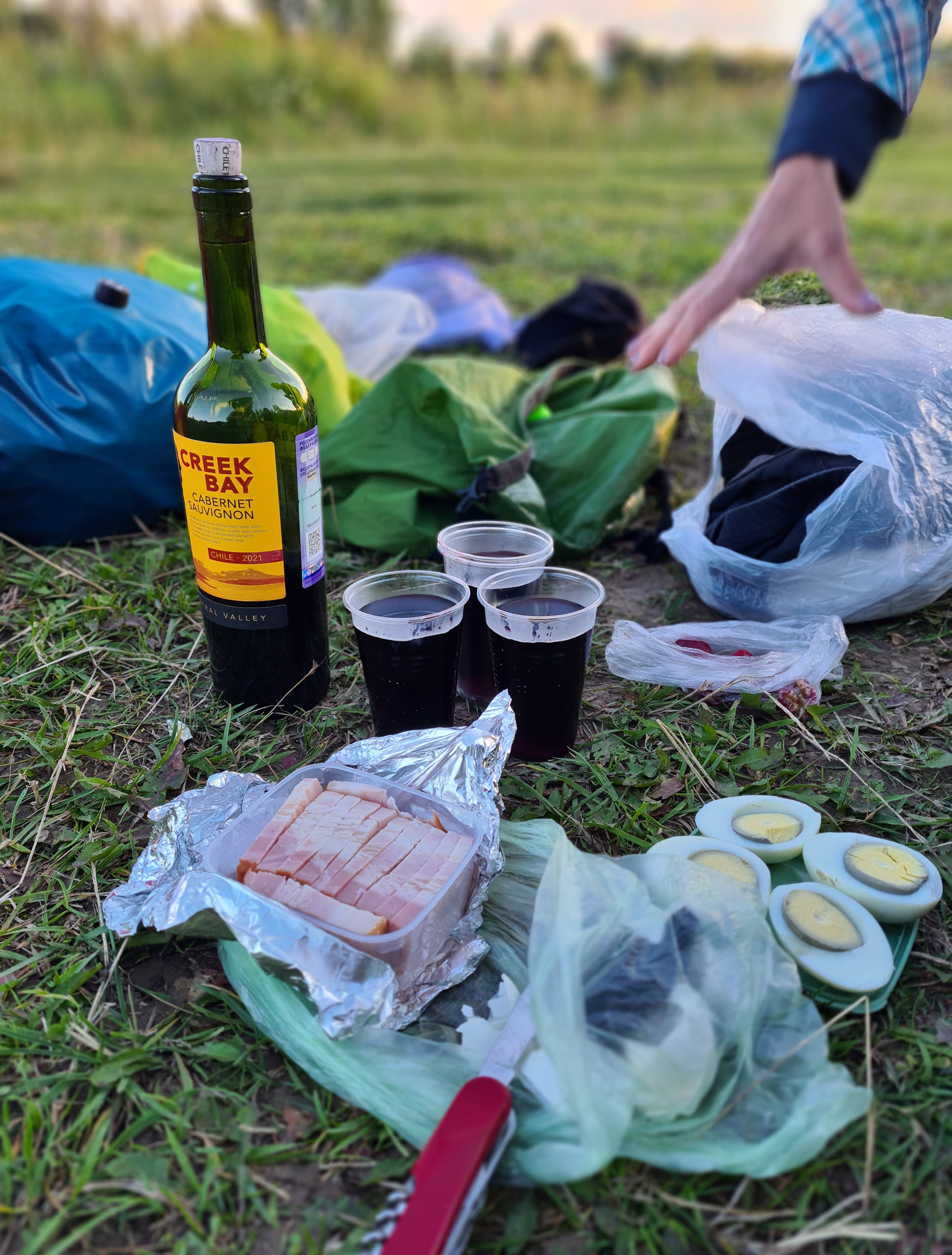 Вернулись к машинам в Погорелом Городище. Распиваем бутылку и доедаем остатки еды.
