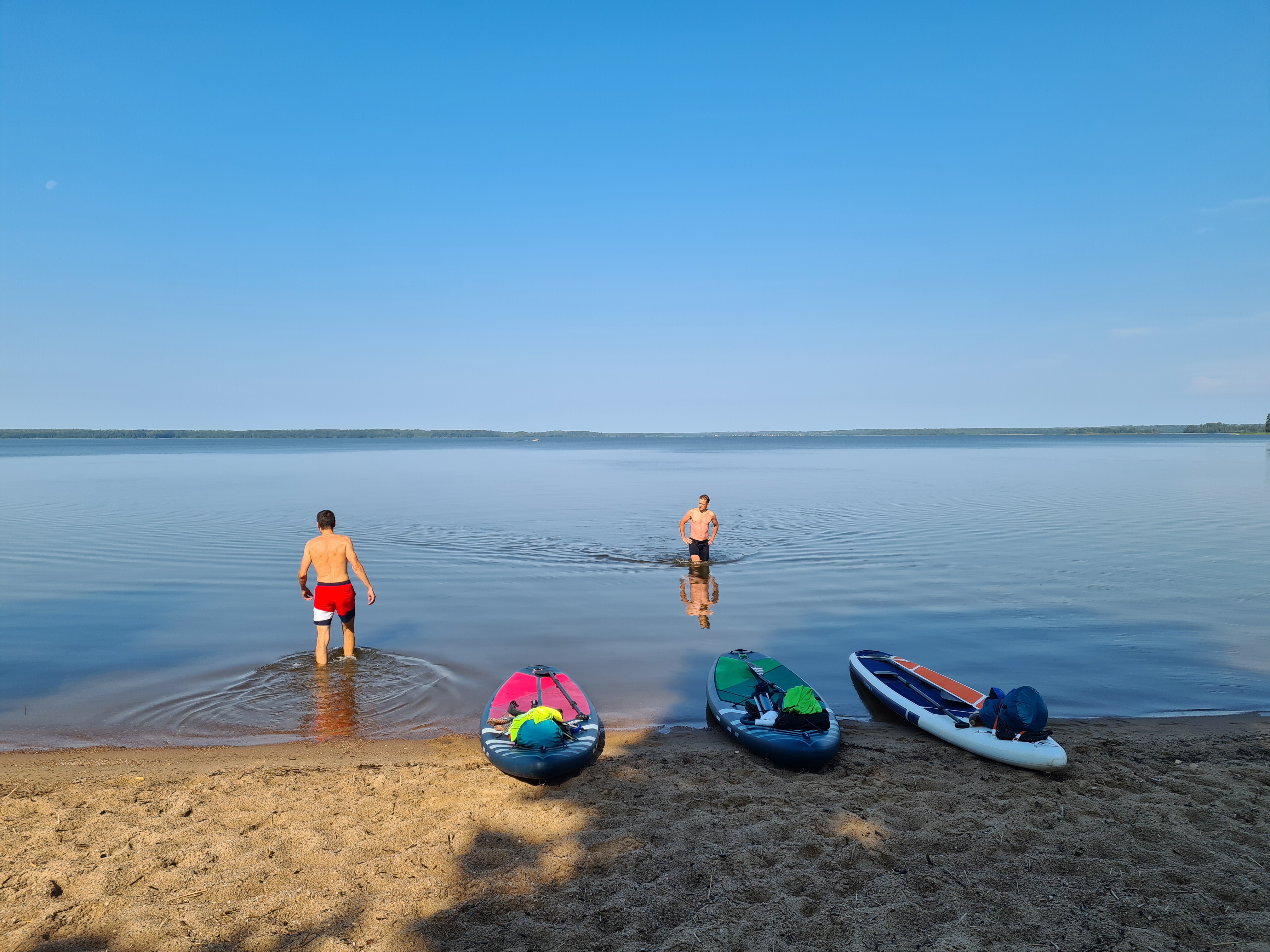 Утро 6 августа 2023. Пляж на озере Шлино около гостевого дома "Яблонька".