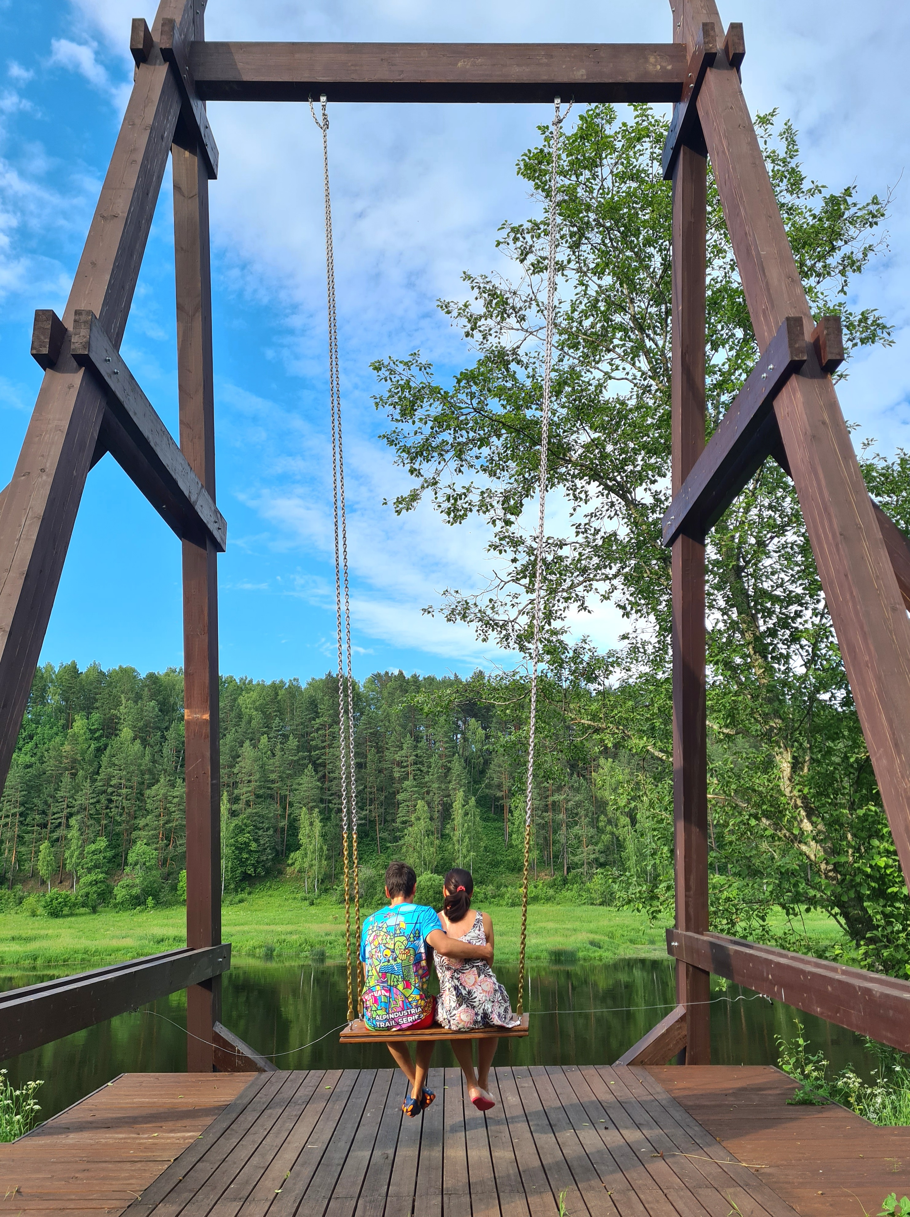 Качели на берегу Волги в Чукавино. Старицкий район, Тверская область.