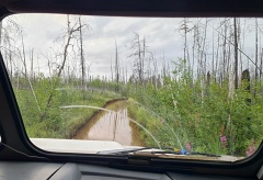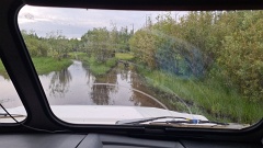 От Якутска до турбазы "Уораннах" на реке Синей - 190 км по асфальту на микроавтобусе и 75 км по таежной дороге на снегоболотоходе