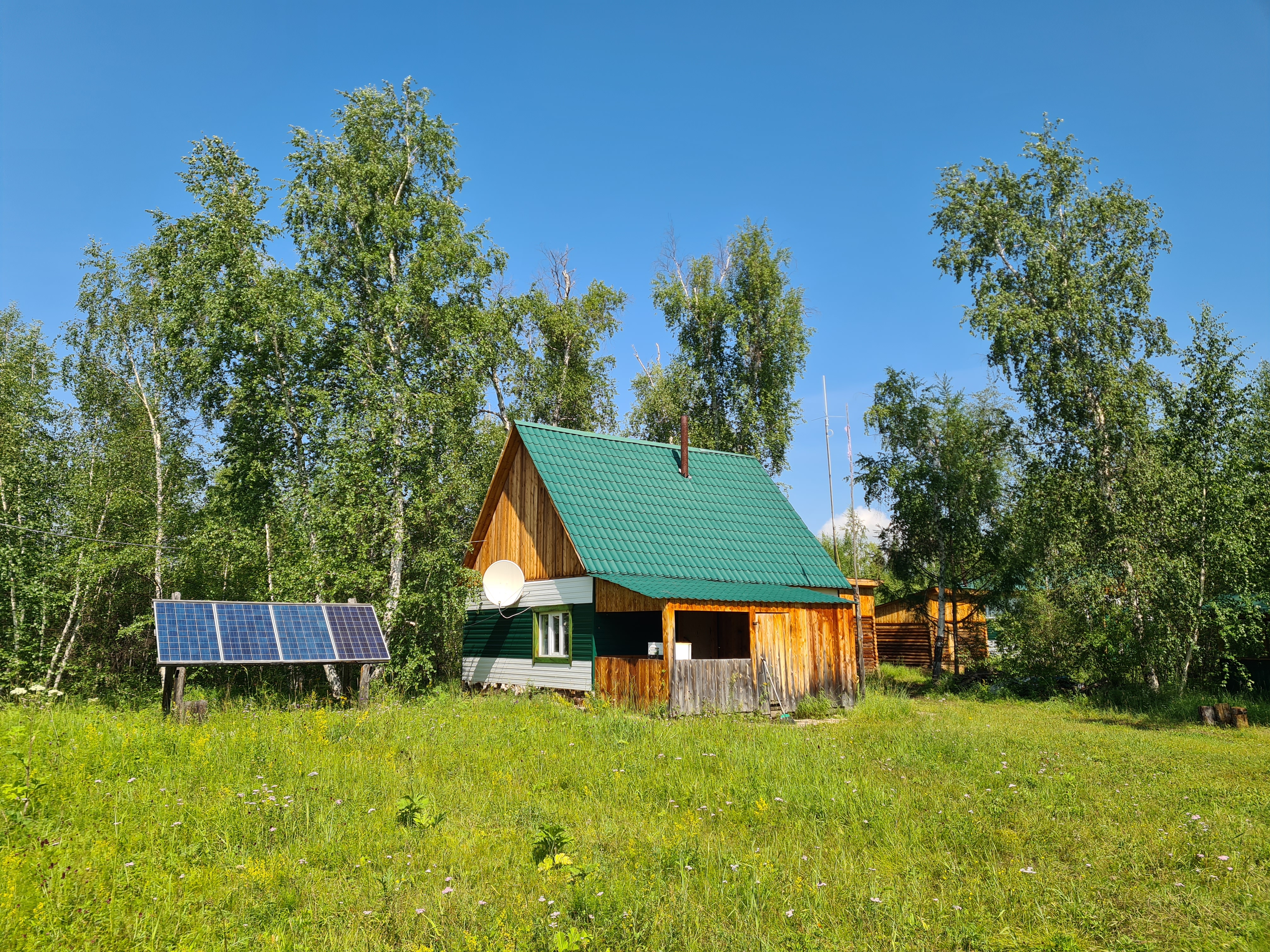 На территории турбазы много домиков.